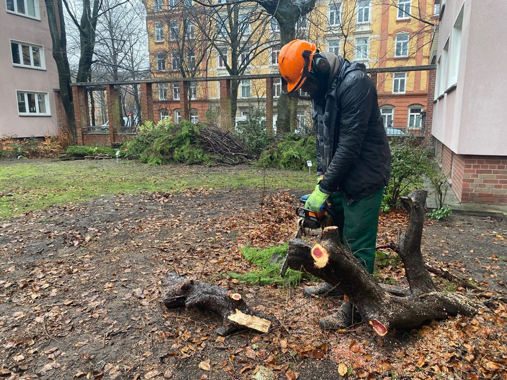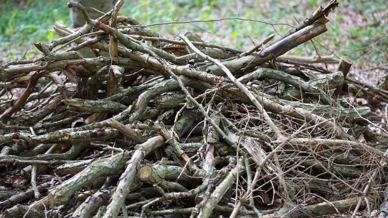 Das Schnittgut bleibt im Naturkreislauf. Das Holz wird für die naturnahe Fläche, die in den kommenden Wochen entsteht, weiterverwertet.