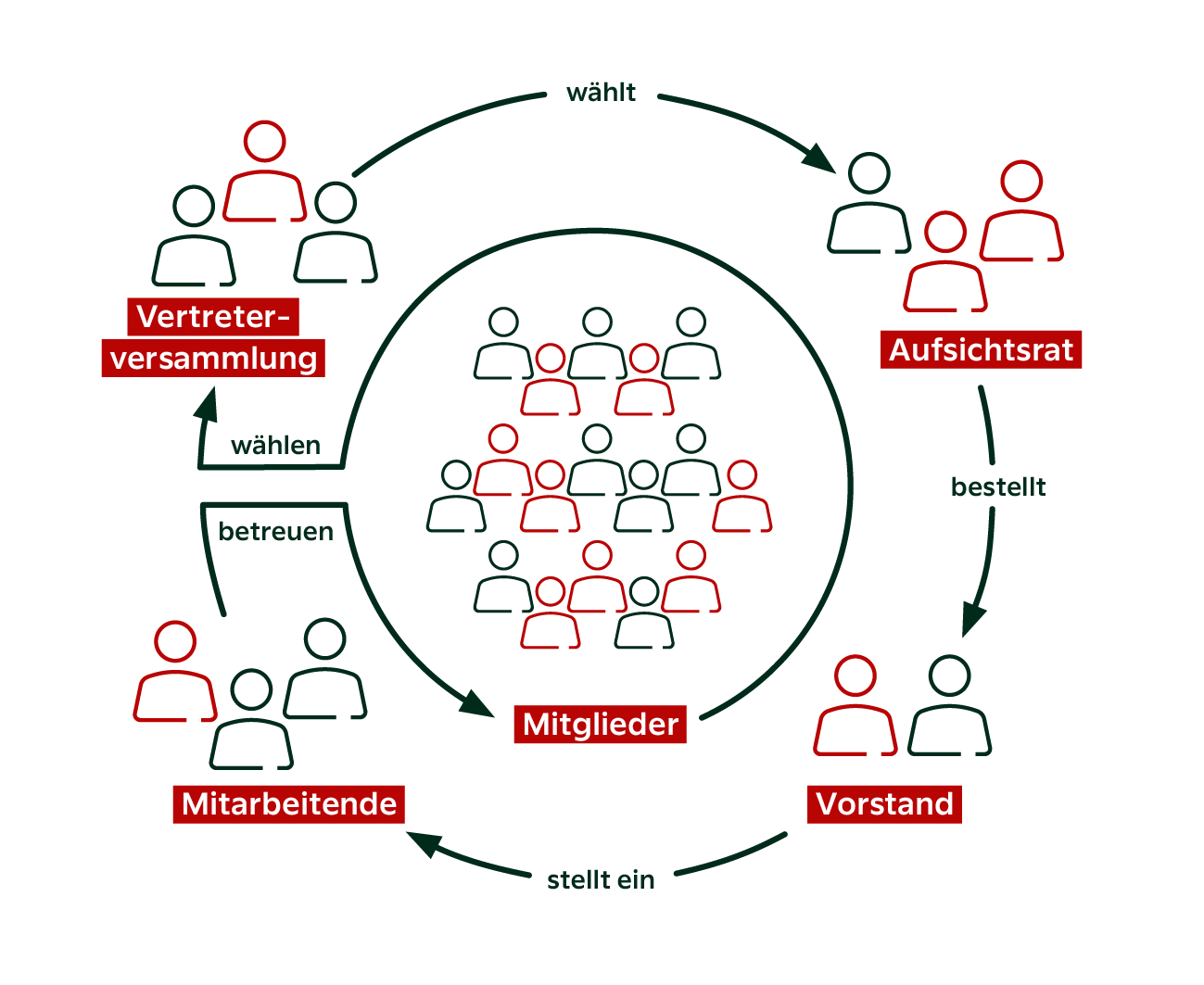 Die Basis einer jeden Genossenschaft bilden ihre Mitglieder. Diese wählen – in geheimer Briefwahl – alle 5 Jahre ihre Vertreterinnen und Vertreter für die Vertreterversammlung aus den Reihen der Genossenschaftsmitglieder. Die Vertreterversammlung ist das wichtigste Organ einer jeden Genossenschaft und kann als „Parlament der Genossenschaft“ bezeichnet werden. Sie besteht aus mindestens 50 gewählten Vertreterinnen und Vertretern.